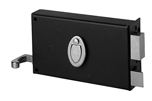 THIRARD - Serrure en Applique à Bouton pour Porte de Garage à Battant - Gauche - 140 x 90 mm - Axe 70 mm - Noir - 3 Clés - Coffre et Gâche Acier Embouti - Cylindre de Sûreté