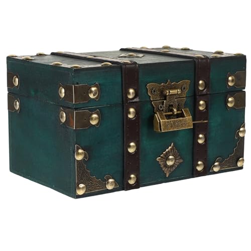 HOOWIFFY Coffre au Trésor de Pirate Rétro en Bois Petit Format, Boîte de Rangement Multifonction Serrure Métallique Style Vintage, Boîte à Bijoux Ancienne et Organisateur pour Maison,
