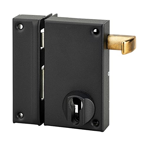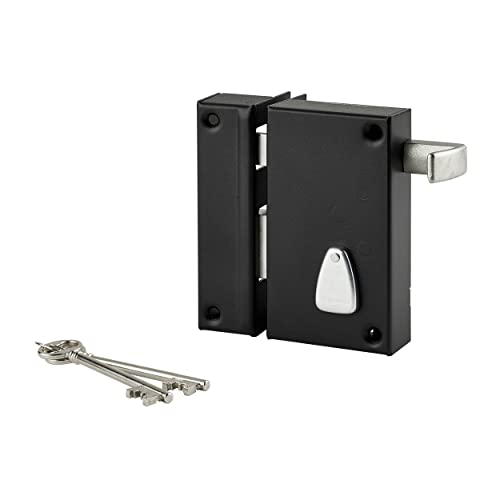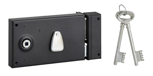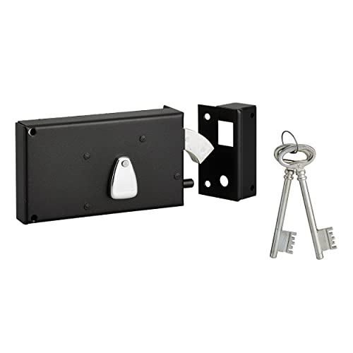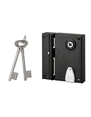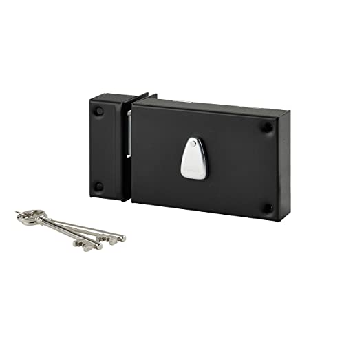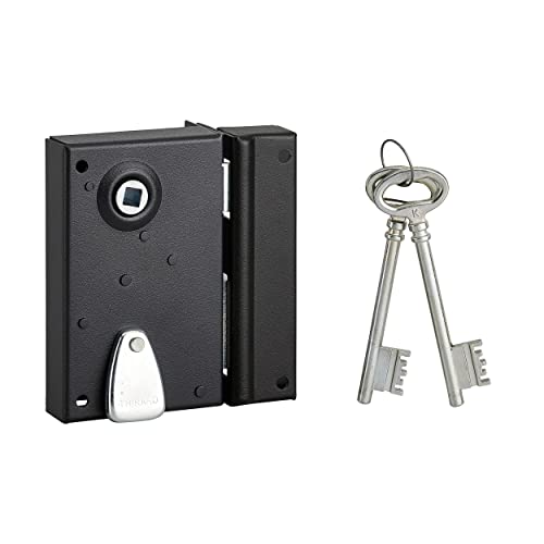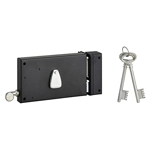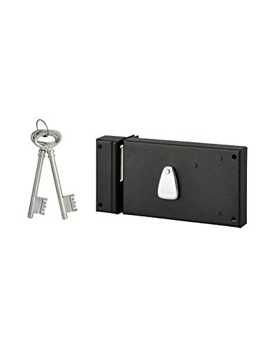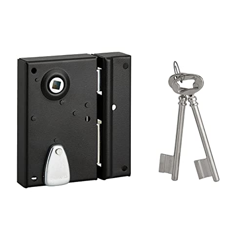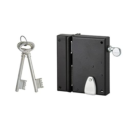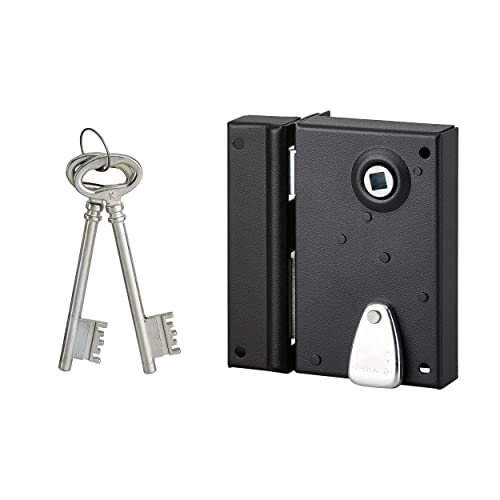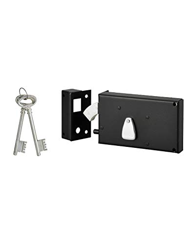 THIRARD - Serrure Horizontale en Applique 6 Gorges à Clé pour Porte de Cave - Pêne Seul - Gauche - Axe 64 mm - 140x88 mm - Noir - 2 Clés - Coffre et Gâche Acier Cambré