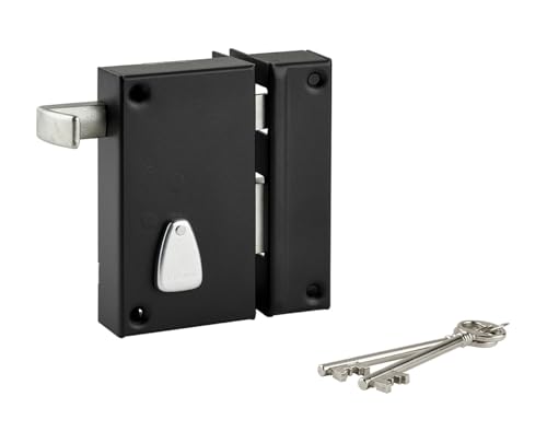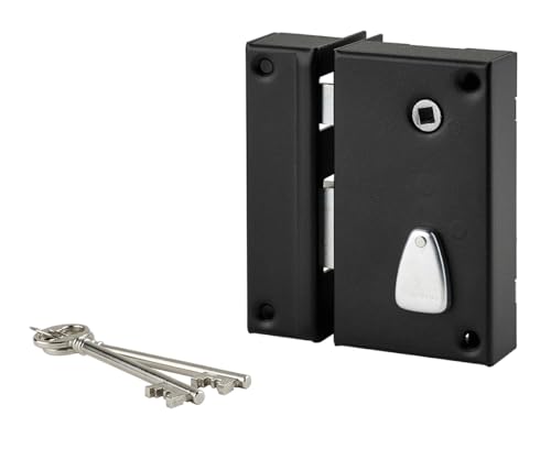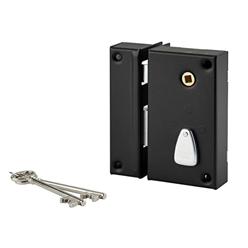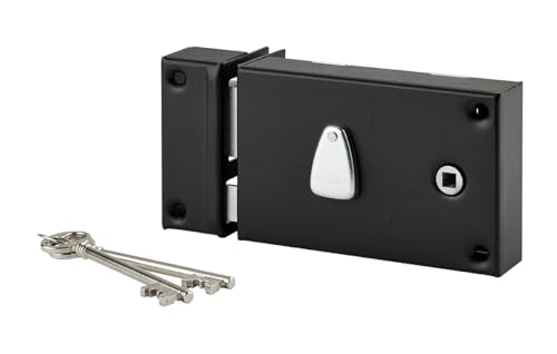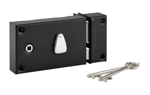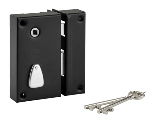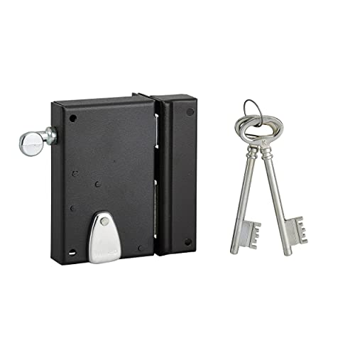 THIRARD - Serrure en Applique à Bouton pour Porte de Garage à Battant - Gauche - 140 x 90 mm - Axe 70 mm - Noir - 3 Clés - Coffre et Gâche Acier Embouti - Cylindre de Sûreté