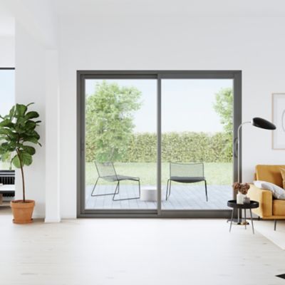 Baie vitrée coulissante alu GoodHome gris - l.180 x h.215 cm - Uw 1,7