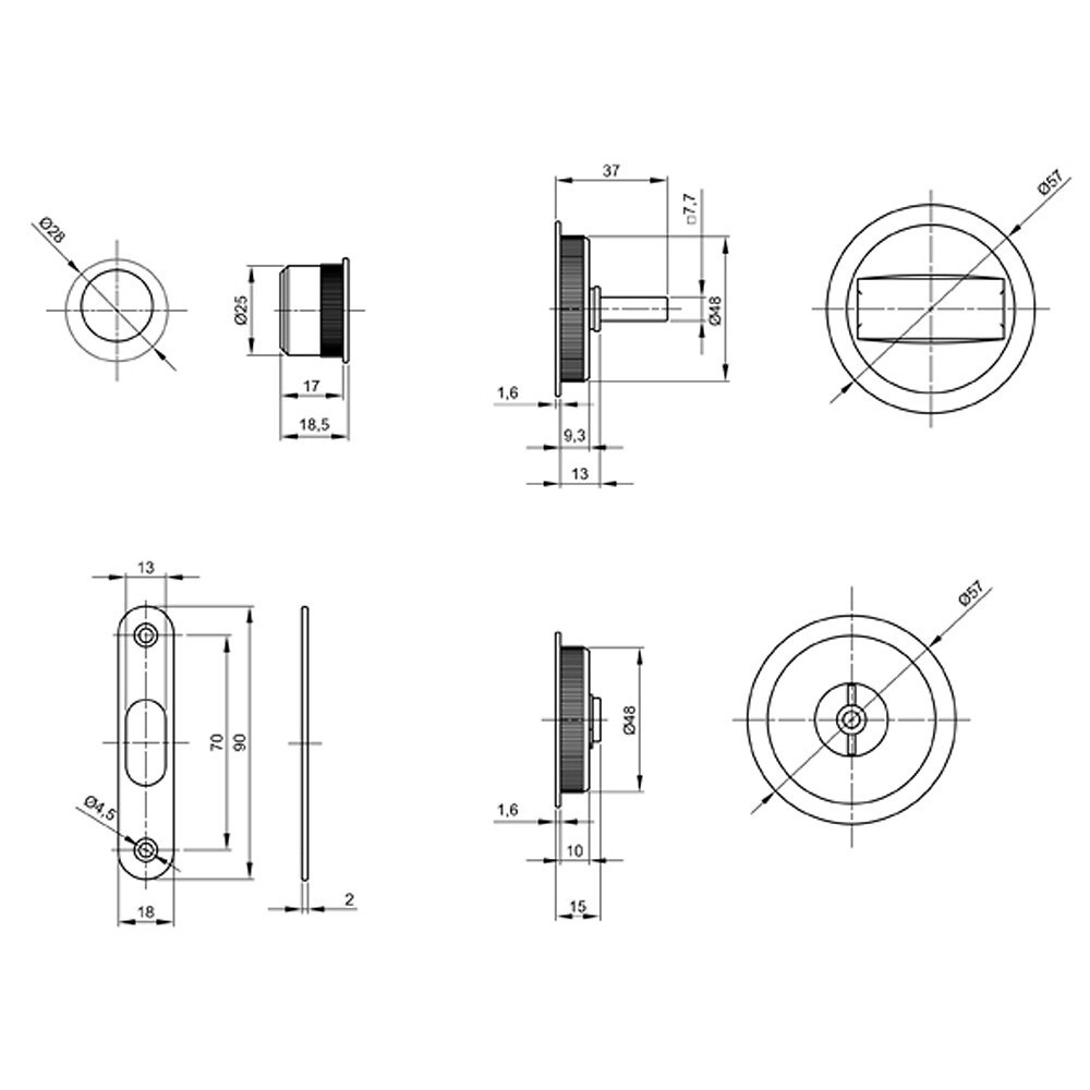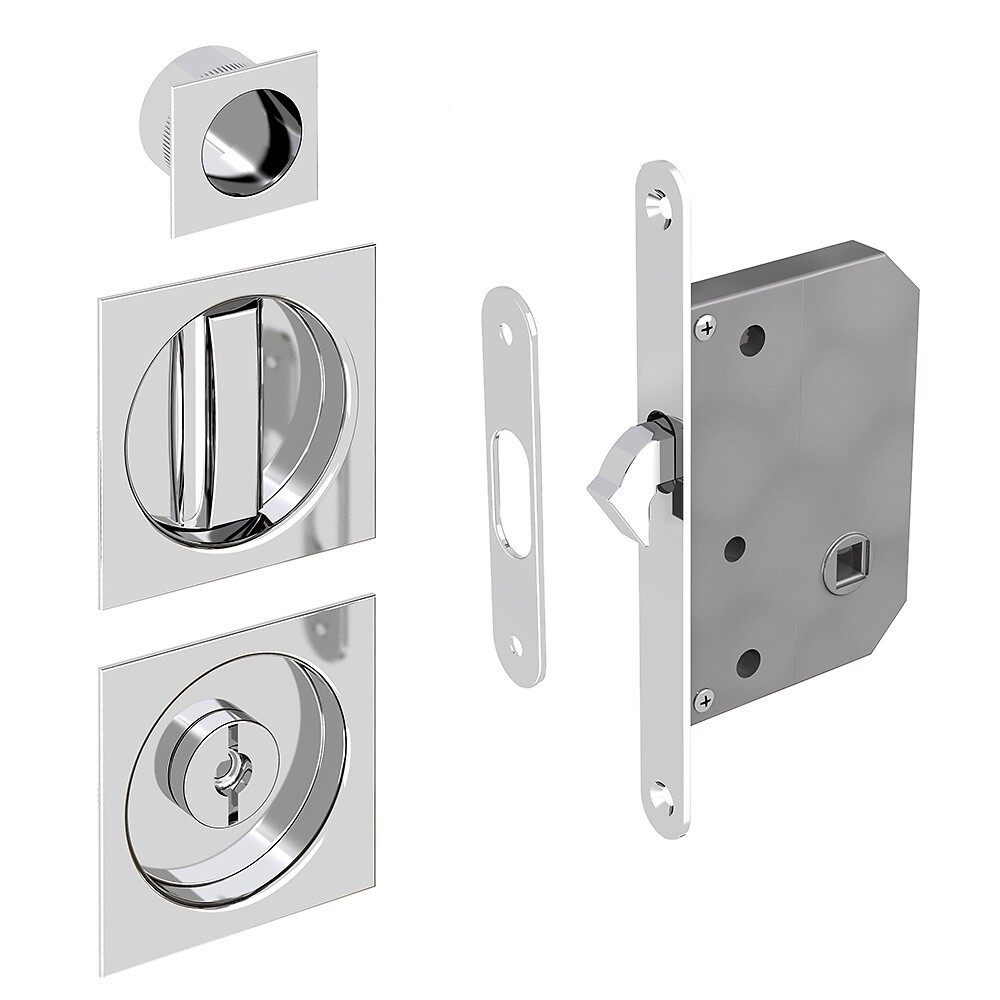 Serrure à condamnation pour porte coulissante intérieure avec man¿uvres carré aluminium aspect chromé satiné