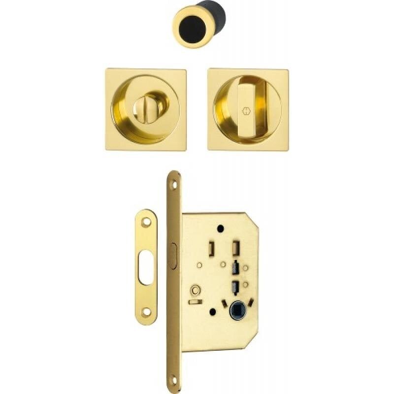 Kit serrure à condamnation, poignée carrée, acier finition doré