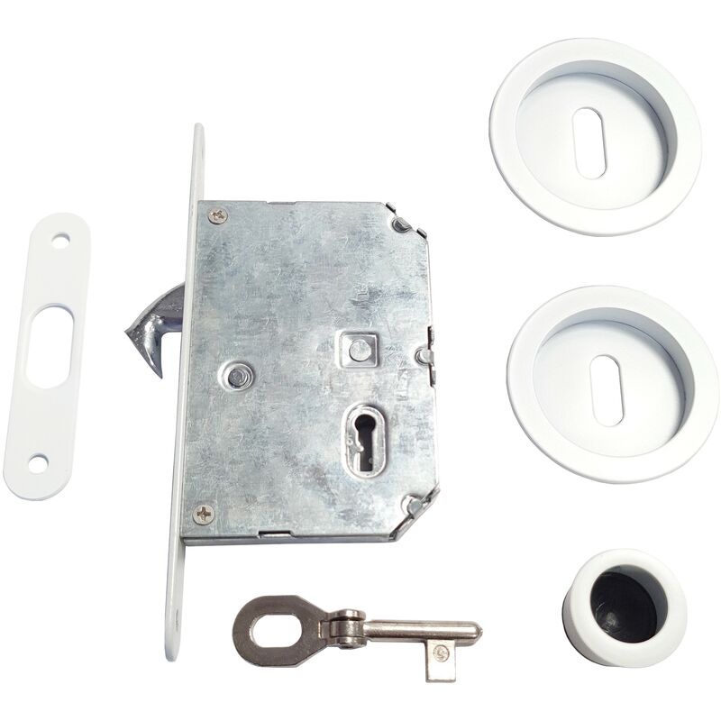 Thirard - Serrure encastrable à crochet pour porte coulissante, bouts ronds, blanc