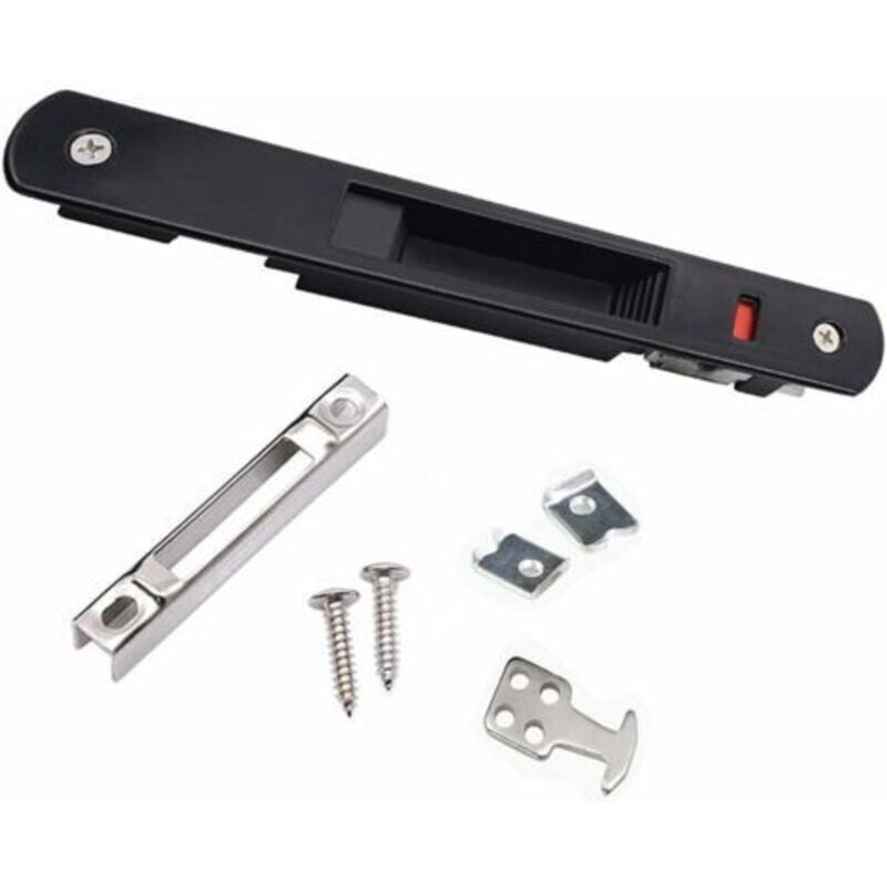 Jusch - Serrure à crochet pour porte et fenêtre coulissantes, serrure à crochet pour porte coulissante en alliage d'aluminium, noire 1 pièce