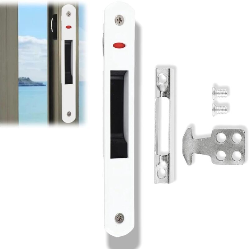 Serrure à crochet pour porte et fenêtre coulissantes, serrure à crochet pour porte coulissante en alliage d'aluminium, blanc 1 pièce