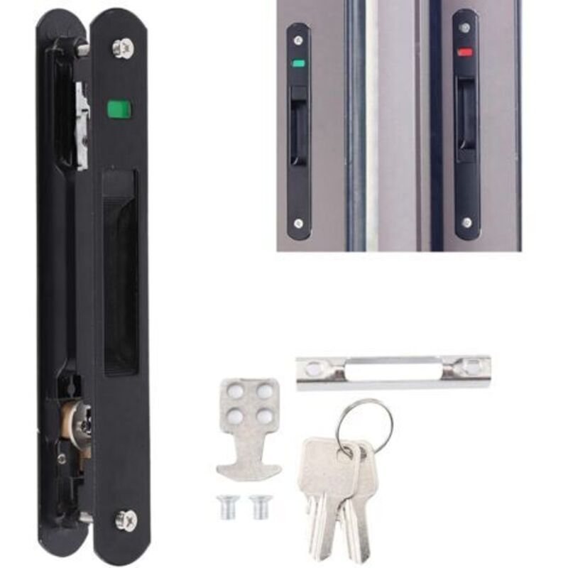 Serrure de porte coulissante - Serrure à crochet pour porte coulissante et fenêtre moderne, serrure double face pour porte de maison (convient aux