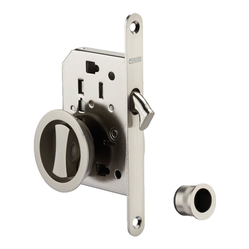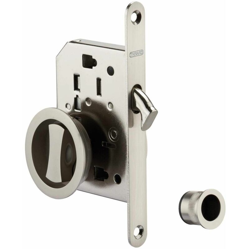 Thirard – Serrure encastrable à condamnation pour porte coulissante – Pêne crochet – Axe 50mm – Têtière à bouts ronds – Finition nickelée