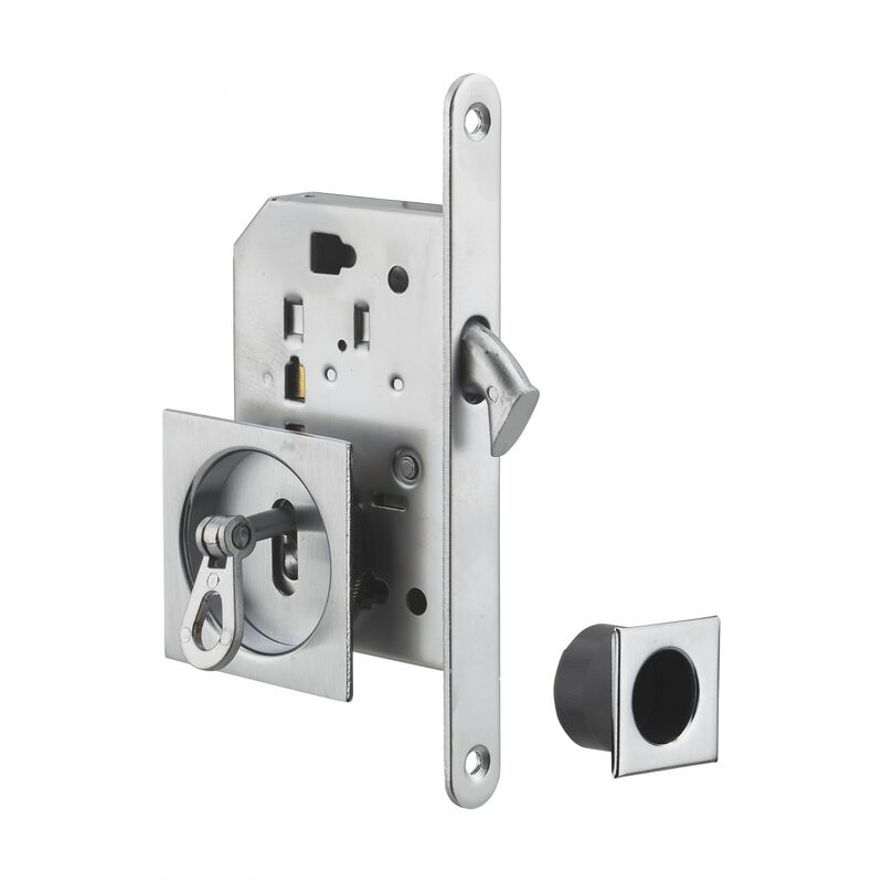 Bonaiti - Serrure porte coulissante à crochet - Axe 50mm - Rosaces carrées condamnation + gache à condamnation