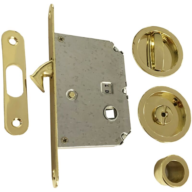 Klose Besser – Serrure à crochet pour porte coulissante – Encastrée à fleur – Laiton poli – Sens de pose à droite – Diamètre axe 16mm