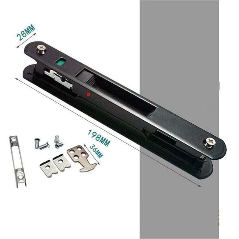 Serrure à crochet pour porte et fenêtre coulissantes, serrure à crochet pour porte coulissante en alliage d'aluminium, noire 1 pièce