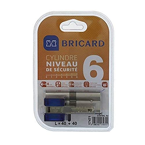 Bricard 17471 Cylindre de serrure double entrée Chifral S2 40+40 Nickelé