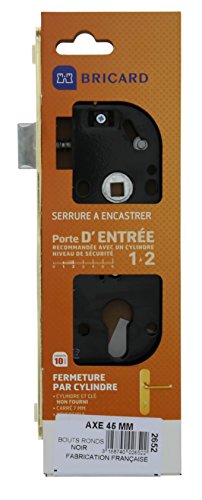 Serrure à encastrer avec cylindre Bricard bout rond noir axe 45 mm