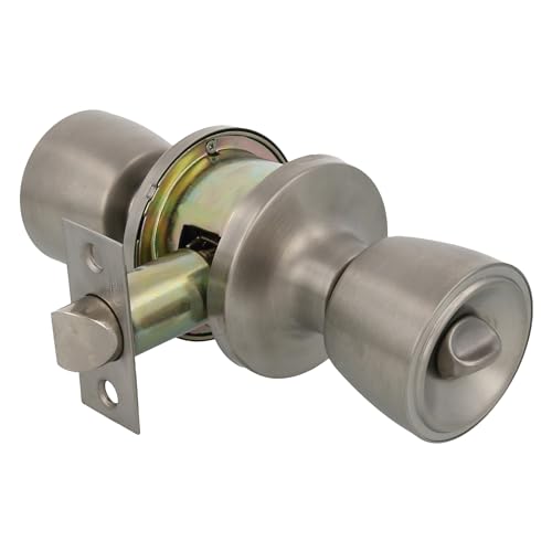 Amig - Ensemble de boutons type boule | Système d'urgence extérieur | Verrouillage intérieur | Serrure de porte 60/70 mm | Bord carré | Laiton | Mat Argenté | Portes de 35 à 45 cm d'épaisseur