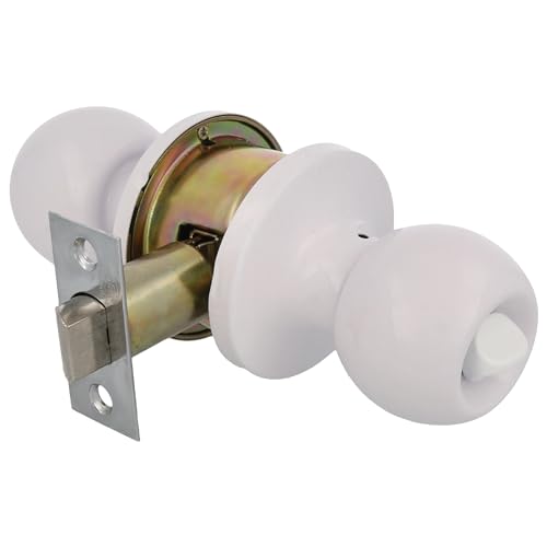 Amig - Ensemble de boutons de porte type boule | Système d'urgence extérieur |Verrouillage intérieur | Serrure de porte 60/70 mm | Bord carré | Laiton | Blanc | Portes de 35 à 45 cm d'épaisseur