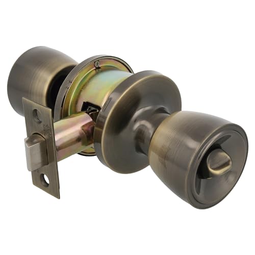 Amig - Ensemble de boutons de porte type boule | Système d'urgence extérieur |Verrouillage intérieur | Serrure de porte 60/70 mm | Bord carré | Laiton | Doré | Portes de 35 à 45 cm d'épaisseur