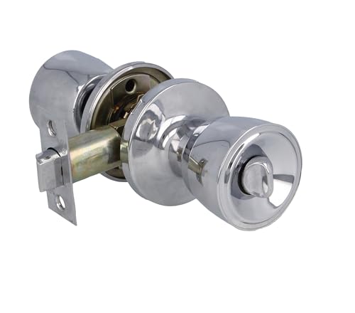 AMIG Mod. 602 - Ensemble de boutons |Laiton Chrome Poli | 18,5x 8 cm | Avec loquet | Fonction privée | Dispositif d'urgence extérieur et serrure intérieure | Porte 35-45mm