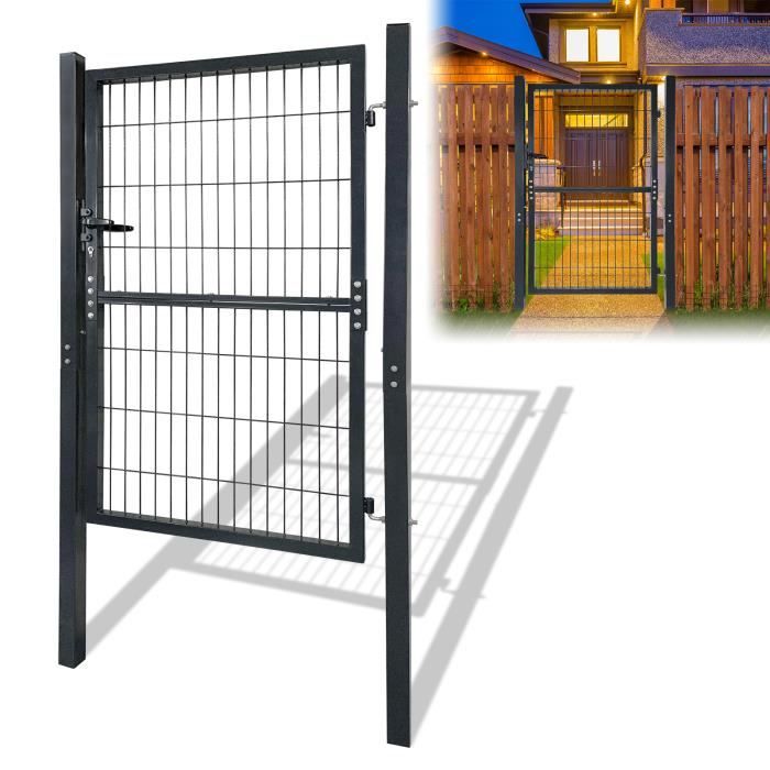 XMTECH Porte de jardin 150 x 100 cm Portillon en fer galvanise portail de clôture avec serrure poignee et 3 clés Anthracite