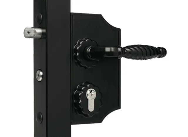 Serrure fer forgé Ral 9005 Noir LOCINOX - portail battant béquille + cylindre - profil 30 à 50 - LAKQ3030 H2L