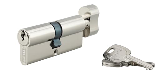 Yale YC500 plus Cylindre de Serrure à Bouton 30x30 mm, 5 Goupilles - Porte Extérieure, Porte intérieure, Porte d'Entrée - 3 Clés, Nickelé