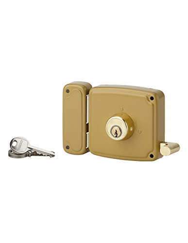 THIRARD - Serrure horizontale en applique double entrée à tirage pour porte d'entrée, droite, 140x94mm, axe 70mm, marron, 3 clés