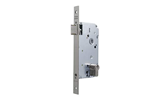 Tesa Assa Abloy 13558CAI Serrure de porte en bois avec cylindre inoxydable entrée 50 mm/Front carré 135