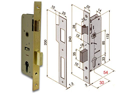 Tesa Assa Abloy 13548CHL Serrure de porte en bois avec cylindre laitonné. Entrée 40 mm/Front carré 135