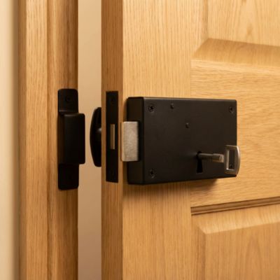 Serrure verrou en applique noire gauche 9.5 x 8.2 cm