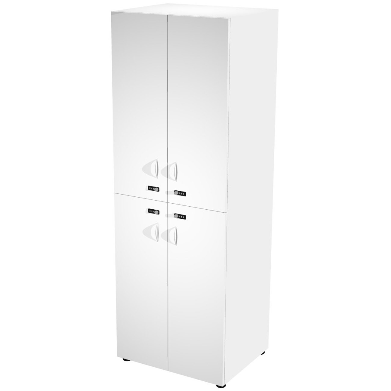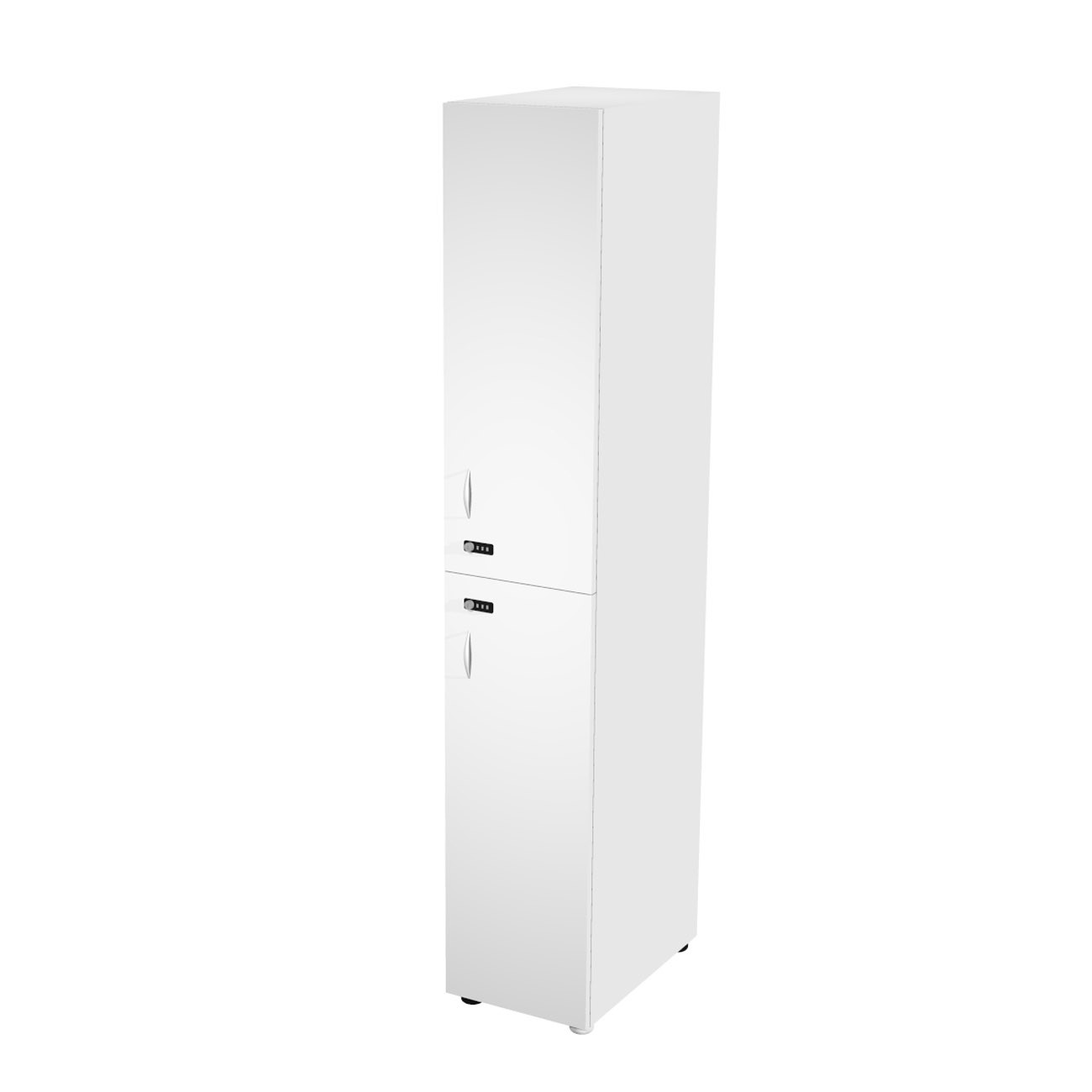Casier haut simple Eminence L. 33 x H. 184 cm - Meuble 1 colonnes 2 portes superposées avec serrures à code indépendantes - 1 niches intérieurs par porte - Corps Blanc - Portes blanches