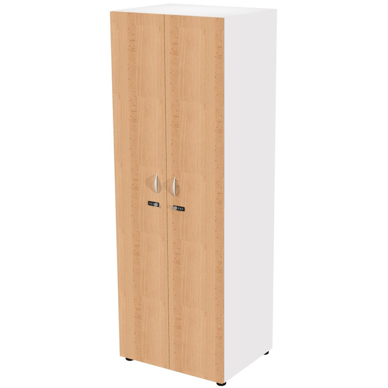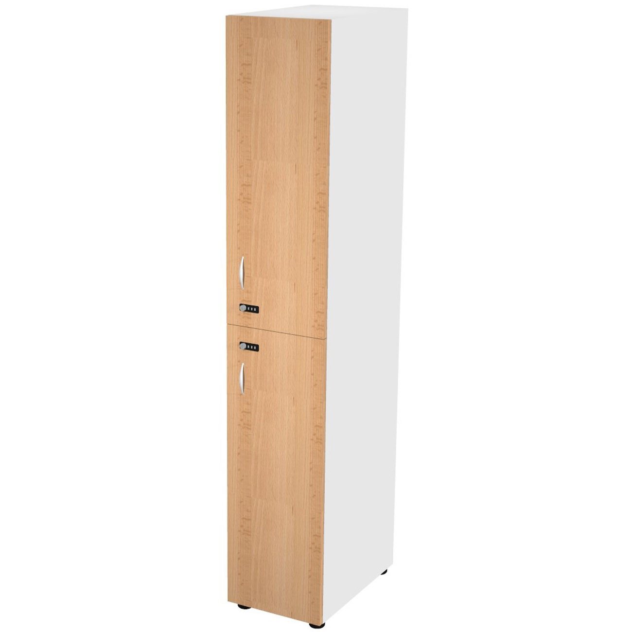 Casier haut simple Eminence L. 33 x H. 184 cm - Meuble 1 colonnes 2 portes superposées avec serrures à code indépendantes - 1 niches intérieurs par porte - Corps Blanc - Portes Hêtre