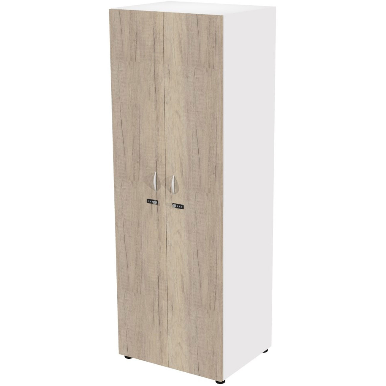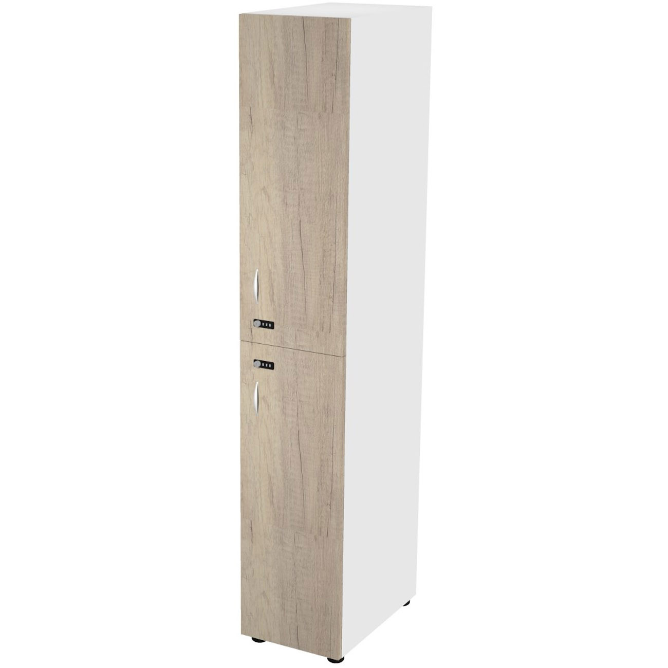 Casier haut simple Eminence L. 33 x H. 184 cm - Meuble 1 colonnes 2 portes superposées avec serrures à code indépendantes - 1 niches intérieurs par porte - Corps Blanc - Portes Chêne Canadien