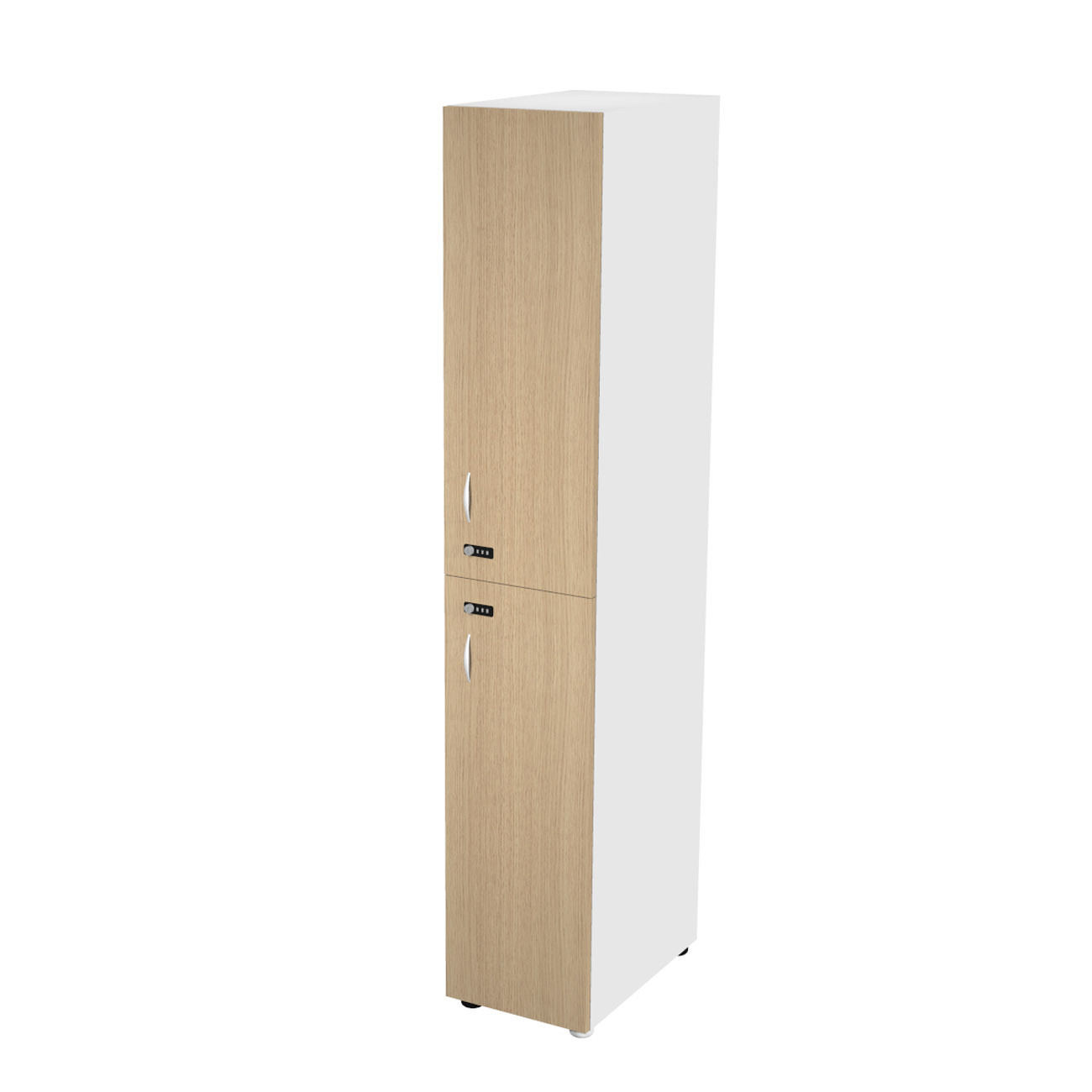 Casier haut simple Eminence L. 33 x H. 184 cm - Meuble 1 colonnes 2 portes superposées avec serrures à code indépendantes - 1 niches intérieurs par porte - Corps Blanc - Portes chêne