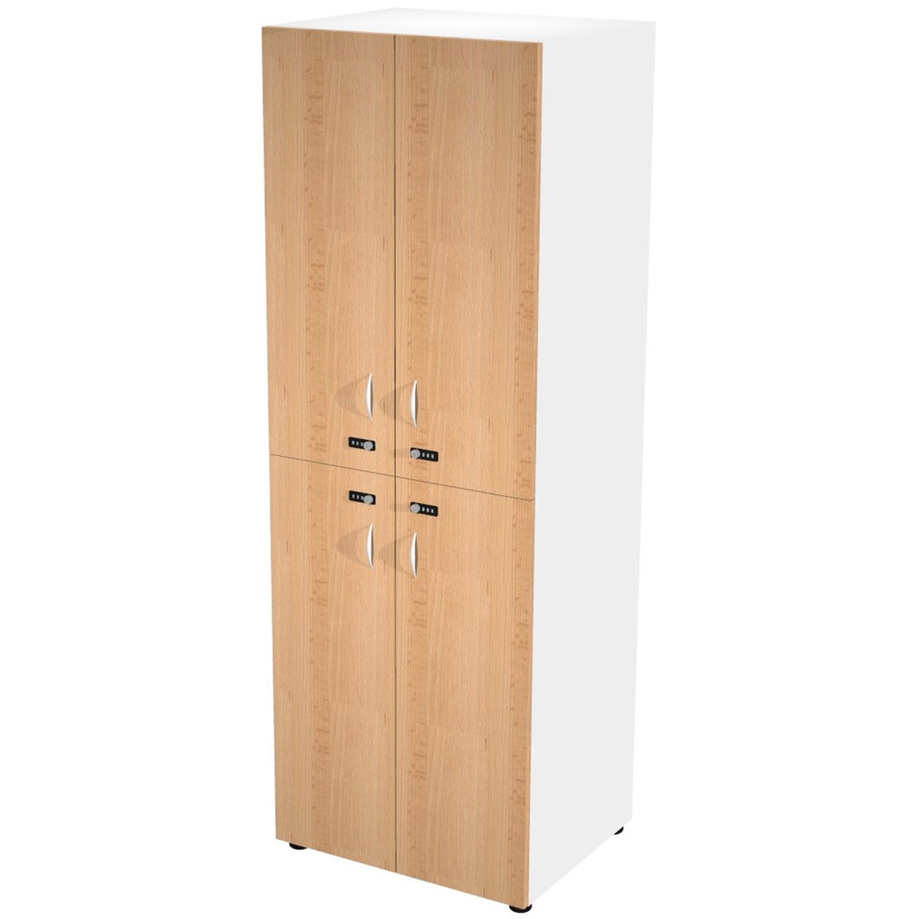 Casier double Eminence L. 64,2 x H. 184 cm - Meuble 2 colonnes 4 portes superposées avec serrures à code indépendantes - 4 niches principales - Corps Blanc - Portes Hêtre