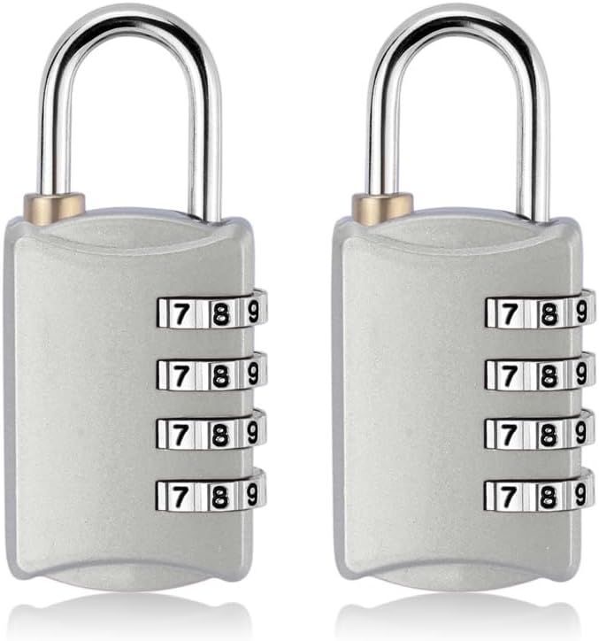 KALANKA-Cadenas de voyage à 4 chiffres, serrure à combinaison pour bagages, serrure à combinaison, cadenas à clé extérieure, serrures à Code (2, argent)
