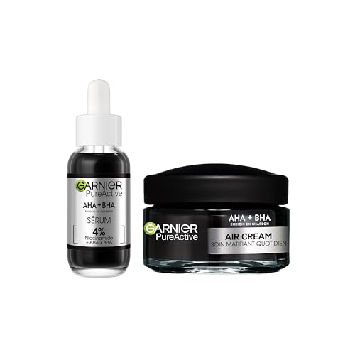Garnier - Routine anti-imperfections enrichie en Charbon et AHA + BHA - Sérum Anti-Points Noirs & Imperfections - Air Cream - Soin Matifiant Quotidien Peaux Mixtes à Grasses à Tendance Acnéique