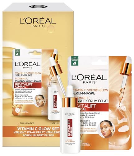 L'Oréal Paris RevitaLift Clinical Vitamine C Glow Kit Sérum & Masque avec 12% de vitamine C pure pour une peau rayonnante et des pores affinés
