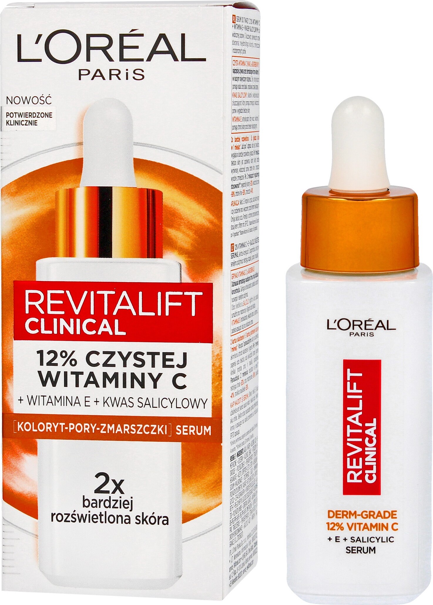 L’Oréal Paris – Sérum 12% Vitamine C Pure + Acide Salicylique + Vitamine E – Antioxydant & Anti-Âge – Teint irrégulier, Pores et Ridules – Flacon Anti-UV – Revitalift Clinical – 30 ml (Lot de 2)