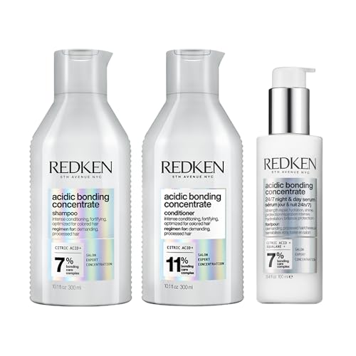 Redken Acidic Bonding Concentrate Shampoo 300ml, Conditioner 300ml, Leave-in Treatment 150ml and 24/7 Night & Day Serum Bundle