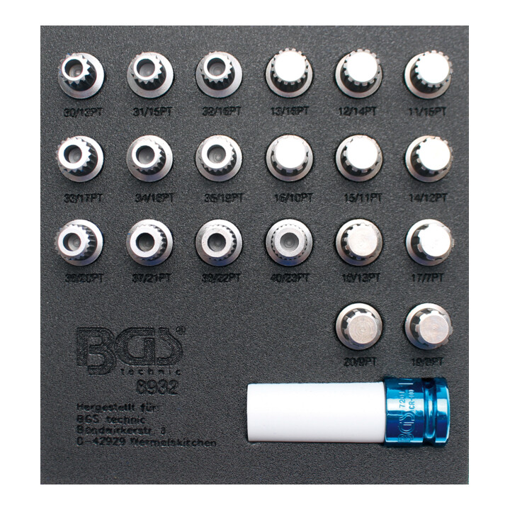 BGS 8932 | Insert de servante d'atelier 1/6 : Jeu d’outils pour écrous antivol pour BMW | 21 pièces