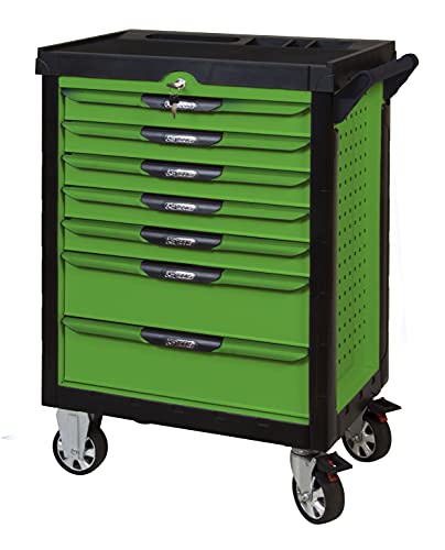 KS Tools 817.7311 - Servante d'atelier 7 tiroirs - Gamme ULTIMATE® - Système de fermeture centralisé par serrure - 4 roues robustes - Equipée de 311 outils - Couleur Verte