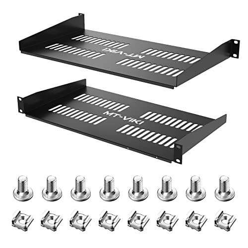MT-VIKI 2 pièces 1U 19 Pouces étagère pour Armoire réseau 1U perforé Serveur de Montage en Rack pour armoires réseau 19 Pouces 22kg 250mm de Profondeur étagère 2 pièces