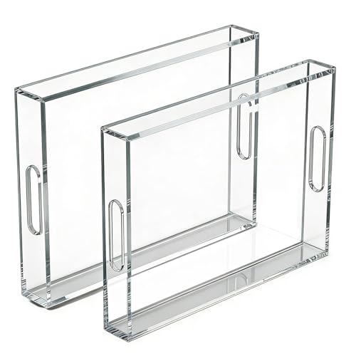 Présentoir de plateau en acrylique, 2 pièces, décoration de table étanche avec poignées, serveur rectangulaire transparent, rangement domestique pour cosmétiques, bijoux, clés