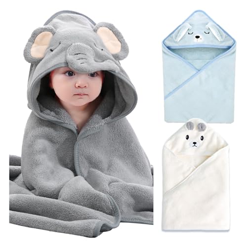 Feegela 3 Pièces Serviette de Bain Capuche Bébé,Serviette Bebe Naissance, Cape de Bain pour Piscine Cape De 0-5 Ans, 80 x 80cm Peluche De Corail De Haute Qualité