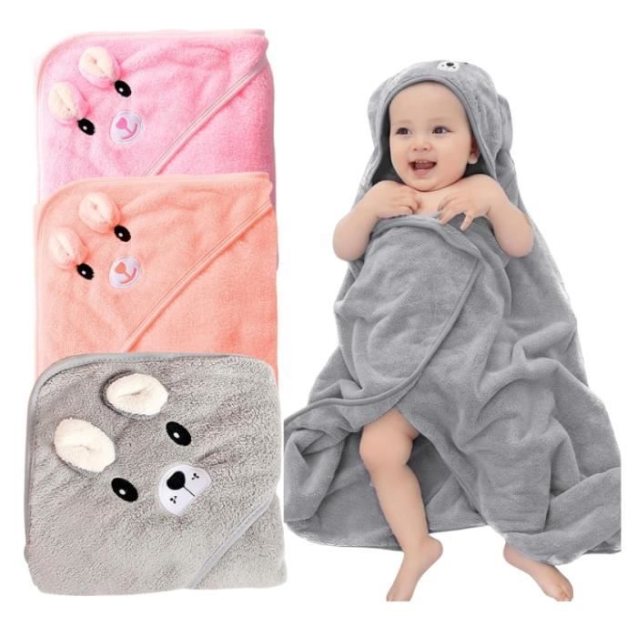 3PCS Serviette de Bain Bébé Serviette à Capuche BébéTrès Grand Serviette De Bain Bebe Cape (80 X 80 cm) Cadeau Naissance