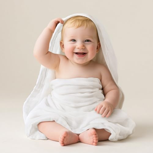 lulumoon Serviette de Bain Bebe: 76x76cm Mousseline de Coton Cape de Bain Bebe-Douce et Absorbante, Garde Bébé au Chaud Après Le Bain-Convient pour 0-18 Mois(Qatmeal)