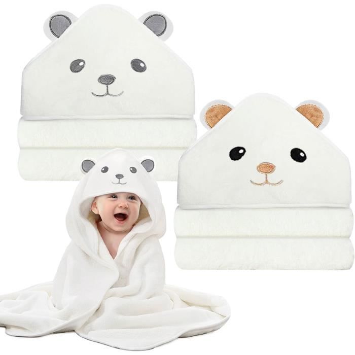 Lot de 2 Cape de Bain Bébé à Capuche80 x 80cm Serviette de Bain avec CapuchonTrès Grand Serviette de Bain Bebe Blanc