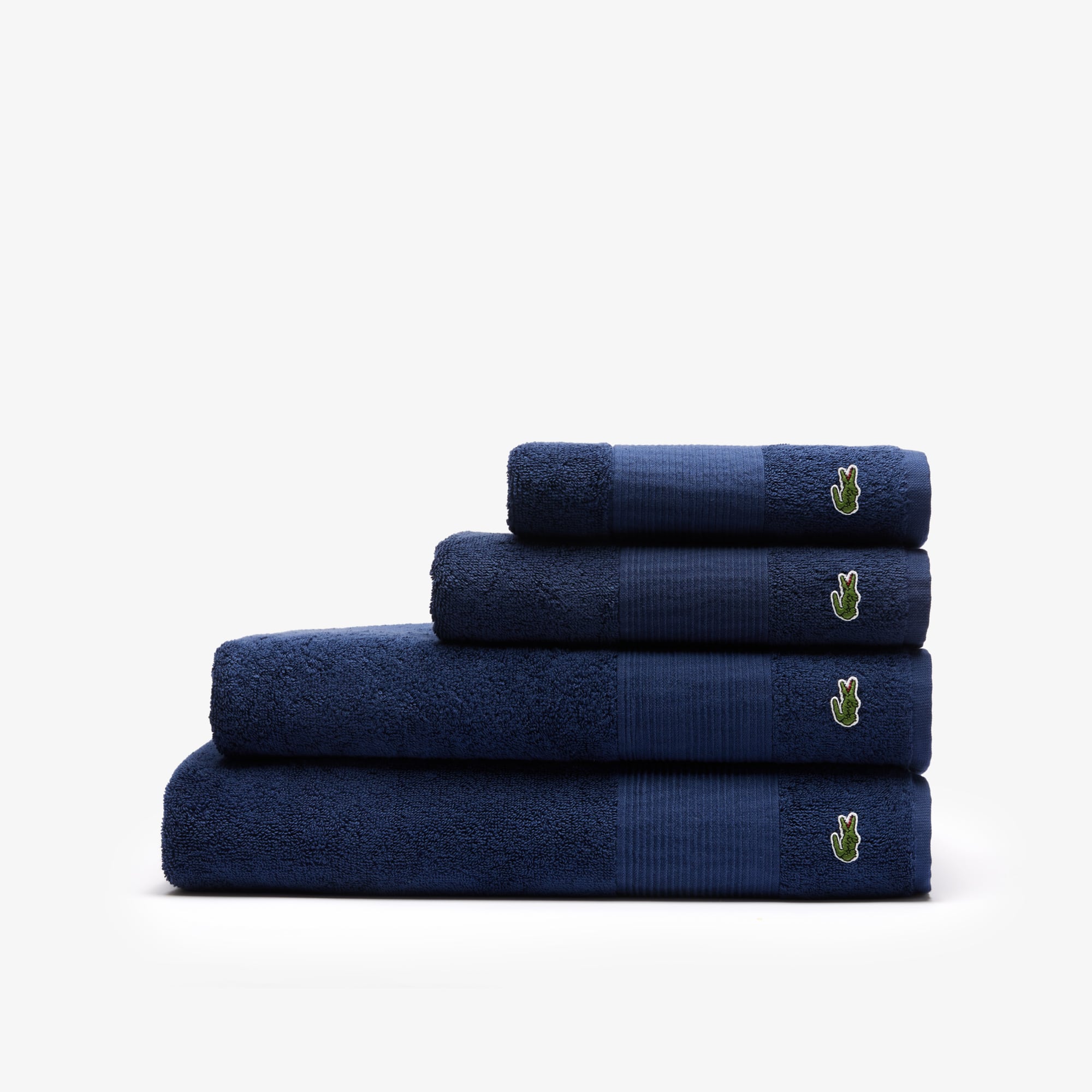 Lacoste Heritage Serviette de Bain 100% Coton Supima Bleu Marine, 40,6 x 76,2 cm, très absorbante, séchage Rapide, Super Douce, Indispensable pour Salle de Bain, Cadeau, Lavable en Machine