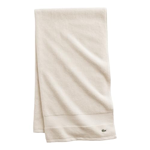 Lacoste Heritage Serviette de bain 100 % coton Supima Craie, 76,2 x 137,2 cm - Très absorbante, séchage rapide, douce, indispensable pour salle de bain, cadeau, lavable en machine