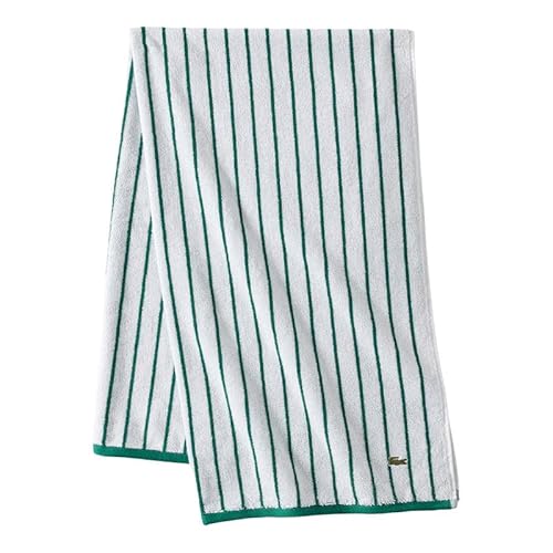 Lacoste Serviette Centre Mark : Design à Rayures Jacquard 100% Coton Doux, léger, Absorbant et Durable, séchage Rapide, Vert, Serviette de Bain de 30 "x 52"