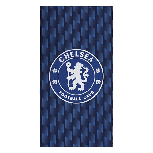 Serviette officielle du Chelsea FC Character World | Toucher ultra doux, motif géométrique du club de football | Idéale pour la maison, le bain, la plage et la piscine | Taille unique 75 cm x 150 cm |